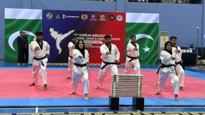 Rawalpindi – 29 December 2025 (Adnan Hameed) : The 18th Korean Ambassador’s National Junior & Cadet Kyorugi & Poomsae Taekwondo Championships (Male & Female) were successfully held from December 26 to 28 at the Shahbaz Sharif Sports Complex, Rawalpindi. The event was co-hosted by the Pakistan Taekwondo Federation (PTF) and the Embassy of the Republic of Korea.