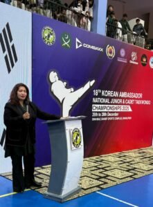 Saba Shamim, President of the PTF Women Wing, reaffirmed that the Pakistan Taekwondo Federation remains firmly committed to providing a strong and inclusive platform for young athletes to showcase their talent and compete at the highest level. She stated that participation in this championship would be an invaluable experience for all athletes, fostering sportsmanship and the true spirit of Taekwondo. She also extended her sincere appreciation to the Embassy of the Republic of Korea for its continued and unwavering support in the development of Taekwondo in Pakistan, both through financial assistance and the generous provision of equipment, noting that this partnership has played a vital role in strengthening the sport at both grassroots and national levels.