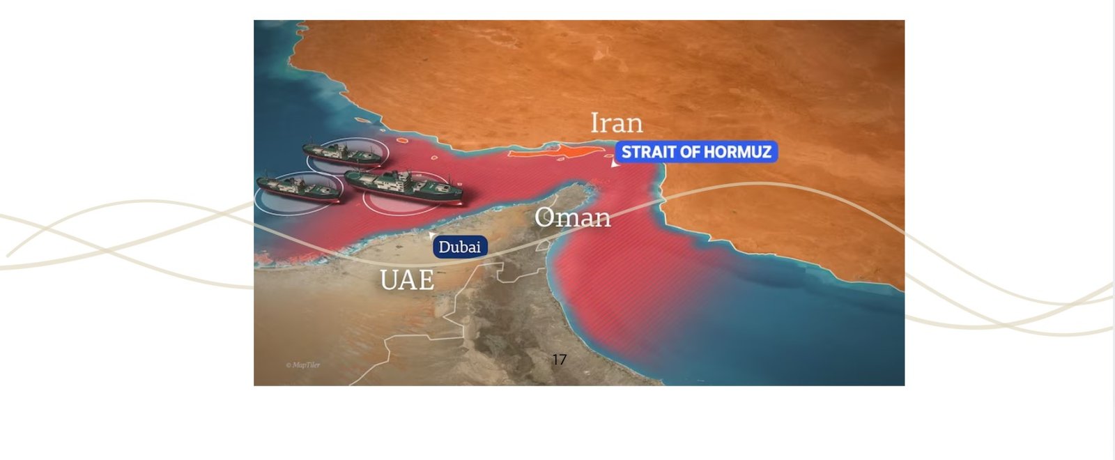 The Strait of Hormuz, an 80-kilometer waterway between Iran and Oman, is one of the world’s most critical maritime corridors. It handles about one-quarter of global oil trade and substantial volumes of LNG and fertilizer exports.