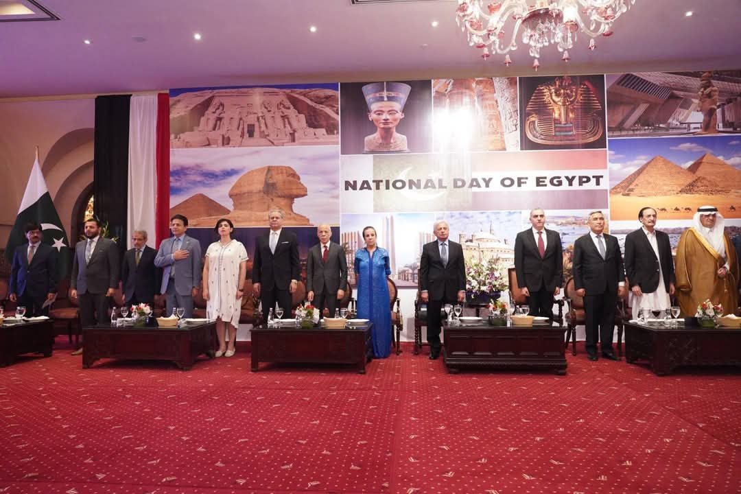 Federal Minister Rana Tanveer Hussain attended the event as chief guest, extended congratulations to the government and people of Egypt on their National Day. Ambassador Dr. Abdelhamid highlighted the strengthening bilateral relations between Egypt and Pakistan, marked by recent high-level engagements and expanded cooperation in trade, investment, education, culture, and defense.