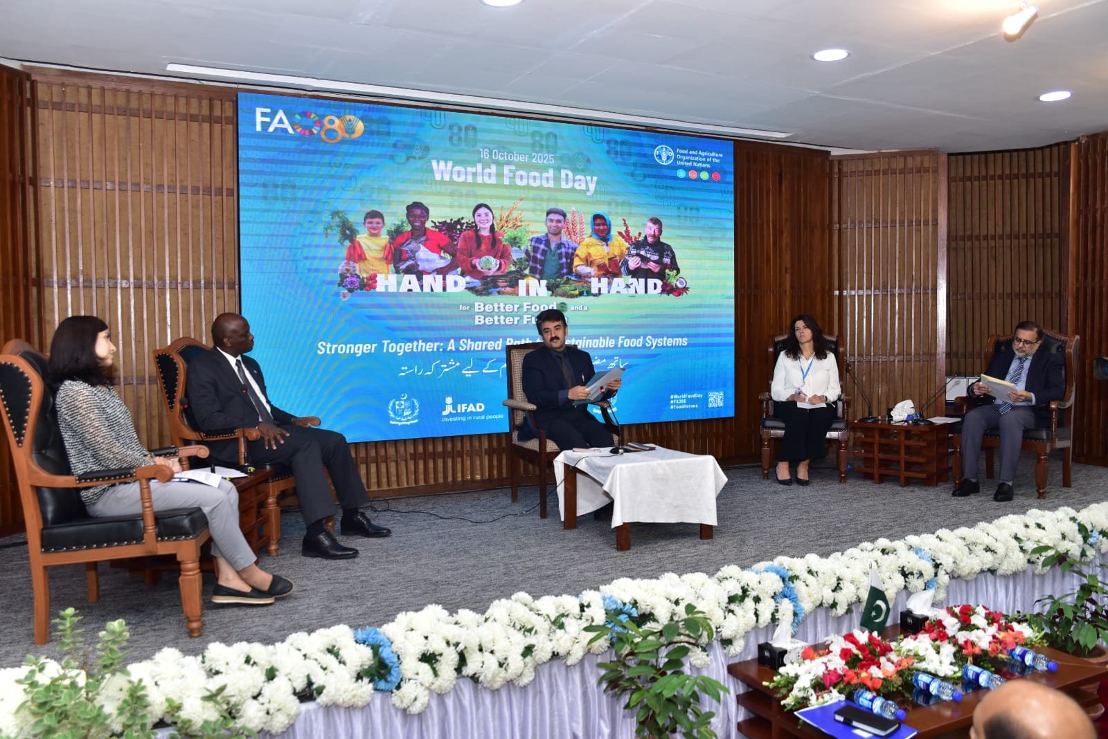 Islamabad – 16 October 2025 –(Adnan Hameed) : FAO Pakistan celebrated World Food Day 2025 with a high-level event focused on promoting sustainable, inclusive, and resilient food systems in the country. The celebration brought together policymakers, development partners, researchers, students, and representatives from the private sector.