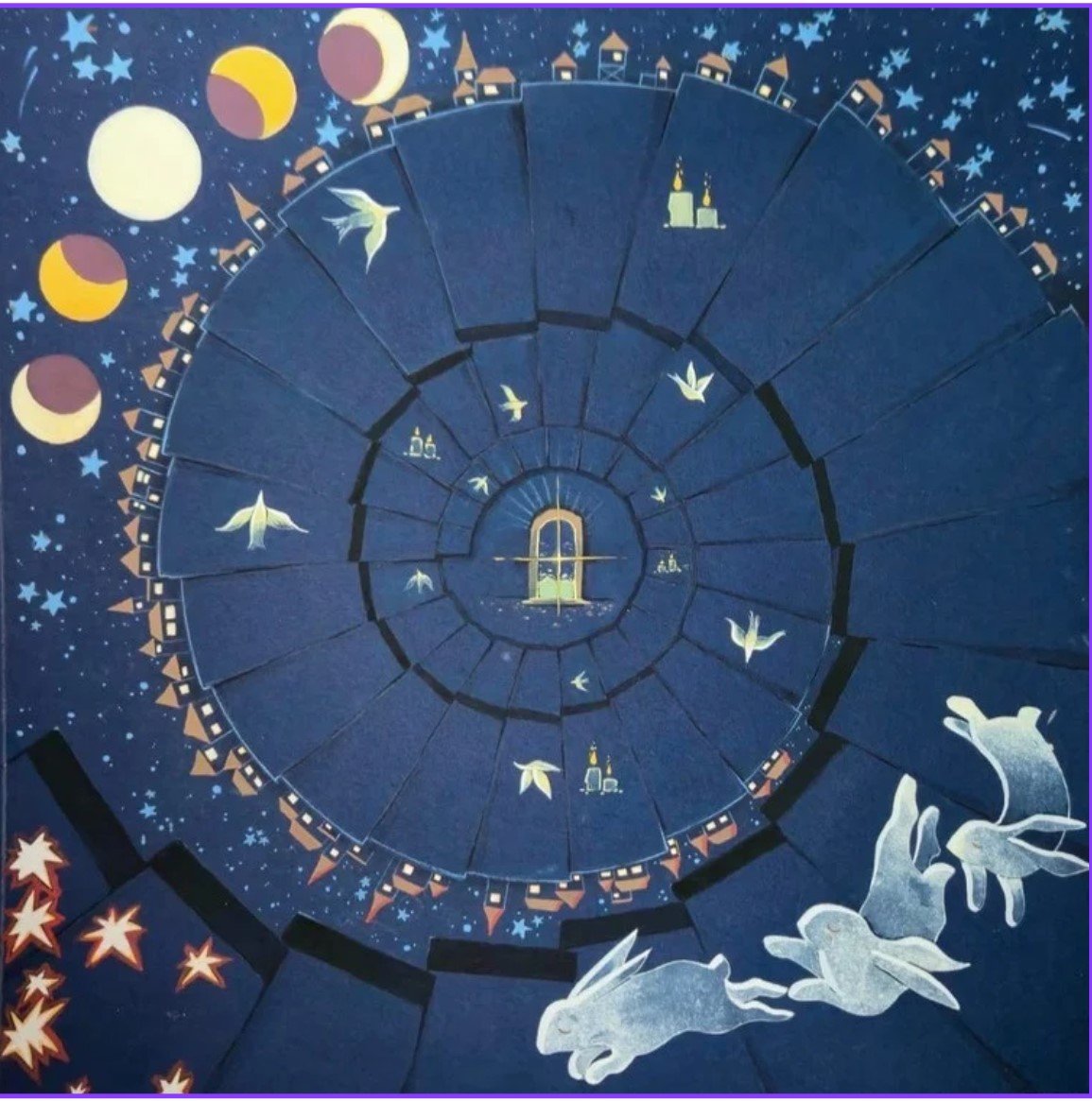 Rabiya Malik’s work emerges from quiet observation and a deeply personal engagement with everyday life. Inspired by the pigeons she encounters daily on her windowsill and terrace, her miniature paintings reflect on themes of stillness, belonging, and inner contemplation. In this work, she employs deep, dark hues—midnight blues and night tones—to evoke the atmosphere of the nocturnal world. Against this dark canvas, stars appear softly illuminated, creating a sense of calm and mystery. Moving animals subtly animate the composition, suggesting gentle motion within the stillness of night.
