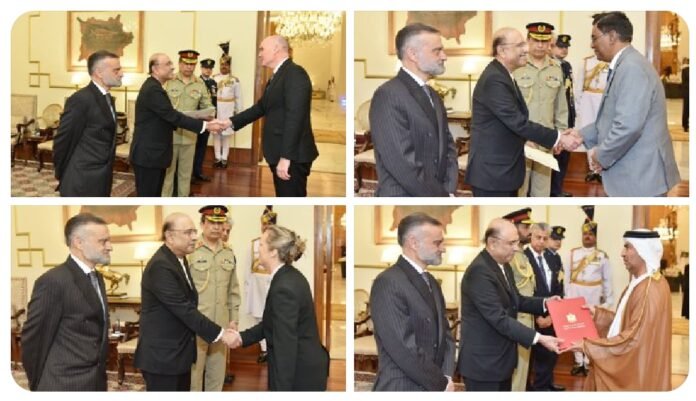 President Zardari receives credentials from four newly designated envoy
