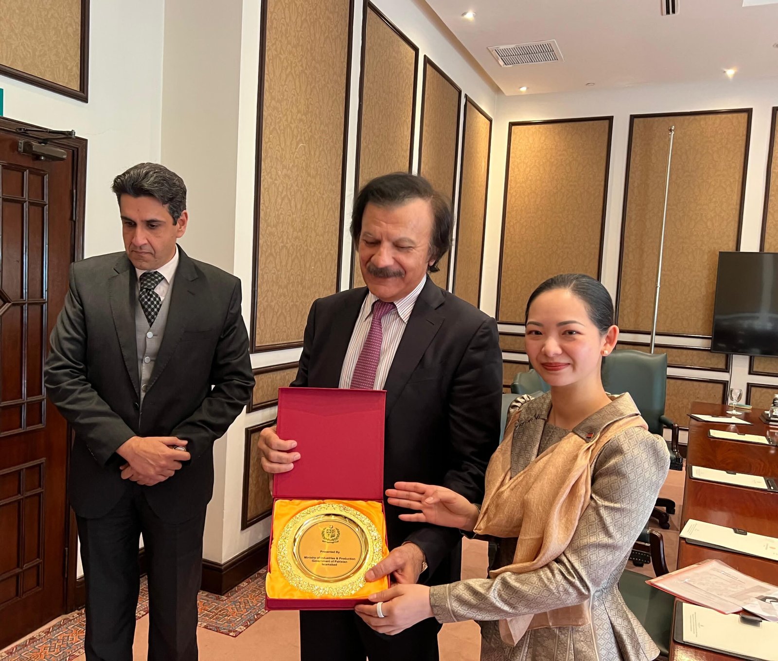 At the conclusion of the meeting, SAPM Haroon Akhtar Khan presented commemorative gifts to the Cambodian Minister for Commerce as a gesture of goodwill and friendship between the two nations.