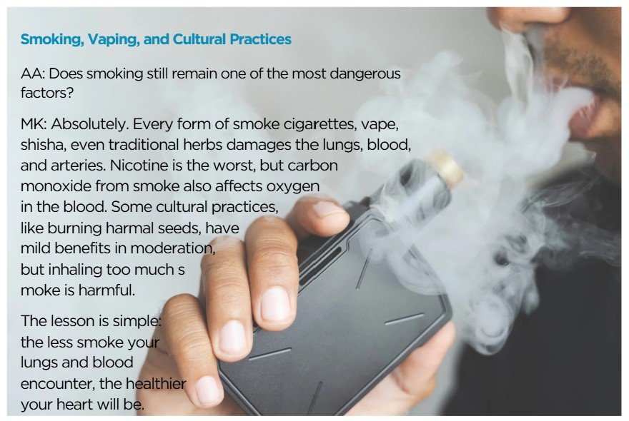 MK: Protecting your heart is a responsibility to yourself, your family, and your country. Every cigarette avoided, every sugary drink replaced with water, every daily walk, these small choices add up. Prevention is cheaper and far more powerful than treatment.