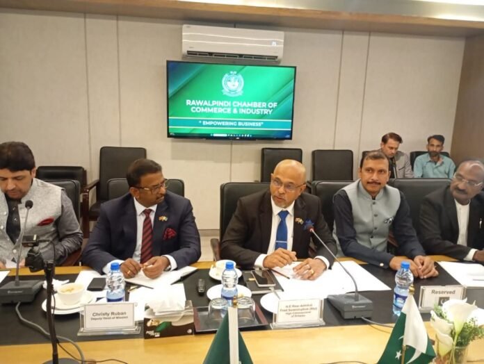 Islamabad – 17 October 2025 (Adnan Hameed) : High Commissioner of Sri Lanka to Pakistan, Rear – Admiral Fred Senevirathna, held a meeting with the President, Usman Shaukat, executive members and the business leaders of RCCI at the Office of the Rawalpindi Chamber of Commerce and Industry in Islamabad.