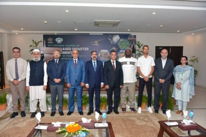 Delivering his keynote address, the Chief Guest of the ceremony, l Zafar Iqbal, Member Space Applications and Research, SUPARCO stated that “Climate Change is no longer a forecast of tomorrow; it is the living reality of today.” He noted that recurring extreme weather events are stark reminders of the urgent need for resilience and preparedness. He highlighted that although Pakistan’s contribution to global CO₂ emissions is less than one percent, the country remains among the most vulnerable to climate impacts. The chairman emphasized that the training reflects a critical shift in approach – from reactive responses to proactive strategies. He explained how modern space-based tools allow risks to be monitored in advance, vulnerable areas to be identified, and decision-makers to be equipped with timely, actionable information. “Disasters do not recognize borders,” he remarked, underlining that regional cooperation, data sharing, and joint strategies are essential for sustainable disaster risk reduction.
