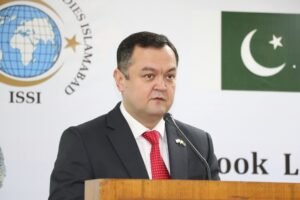 Islamabad – 8 November 2025 (Adnan Hameed) : The Institute of Strategic Studies Islamabad (ISSI), in collaboration with the Embassy of Uzbekistan, hosted the launch of the book titled “Shavkat Mirziyoyev: A Great Leader of Reforms and Regional Integration”. The Chief Guest on the occasion was Aurengzeb Khan Khichi, Federal Minister for National Heritage & Culture Division. Other speakers included Ambassador Sohail Mahmood, Director General, ISSI; Dr. Talat Shabbir, Director, China Pakistan Study Centre (CPSC), ISSI; Alisher Tuhtayev, Ambassador of Uzbekistan to Pakistan; Dr. Mehmood-ul-Hasan Khan, author; Major General Syed Khalid Amir Jaffery, President of the Centre for South Asia and International Studies, Islamabad; and Professor Dr. Adam Saud, Dean of Bahria University, Islamabad.