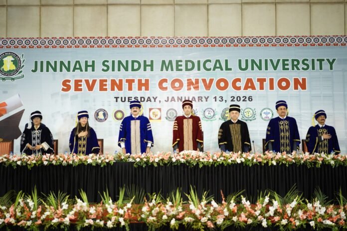 Karachi – 14 January 2026 (MT Team) : The seventh convocation of Jinnah Sindh Medical University (JSMU) was held today in a dignified ceremony, where over 570 students from various fields of health sciences were conferred degrees. The event reflected academic excellence, professional commitment, and the university’s continuous advancement in medical education.