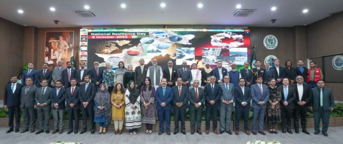 Islamabad – 8 October 2025 (MT Team) : National Disaster Management Authority (NDMA) commemorated National Resilience Day with a solemn ceremony held at the Auditorium, NDMA Headquarters, Islamabad. The observance marked the remembrance of the tragic October 8, earthquake, paying rich tribute to its martyrs and victims, as well as to those affected by all natural and man-made disasters across Pakistan.