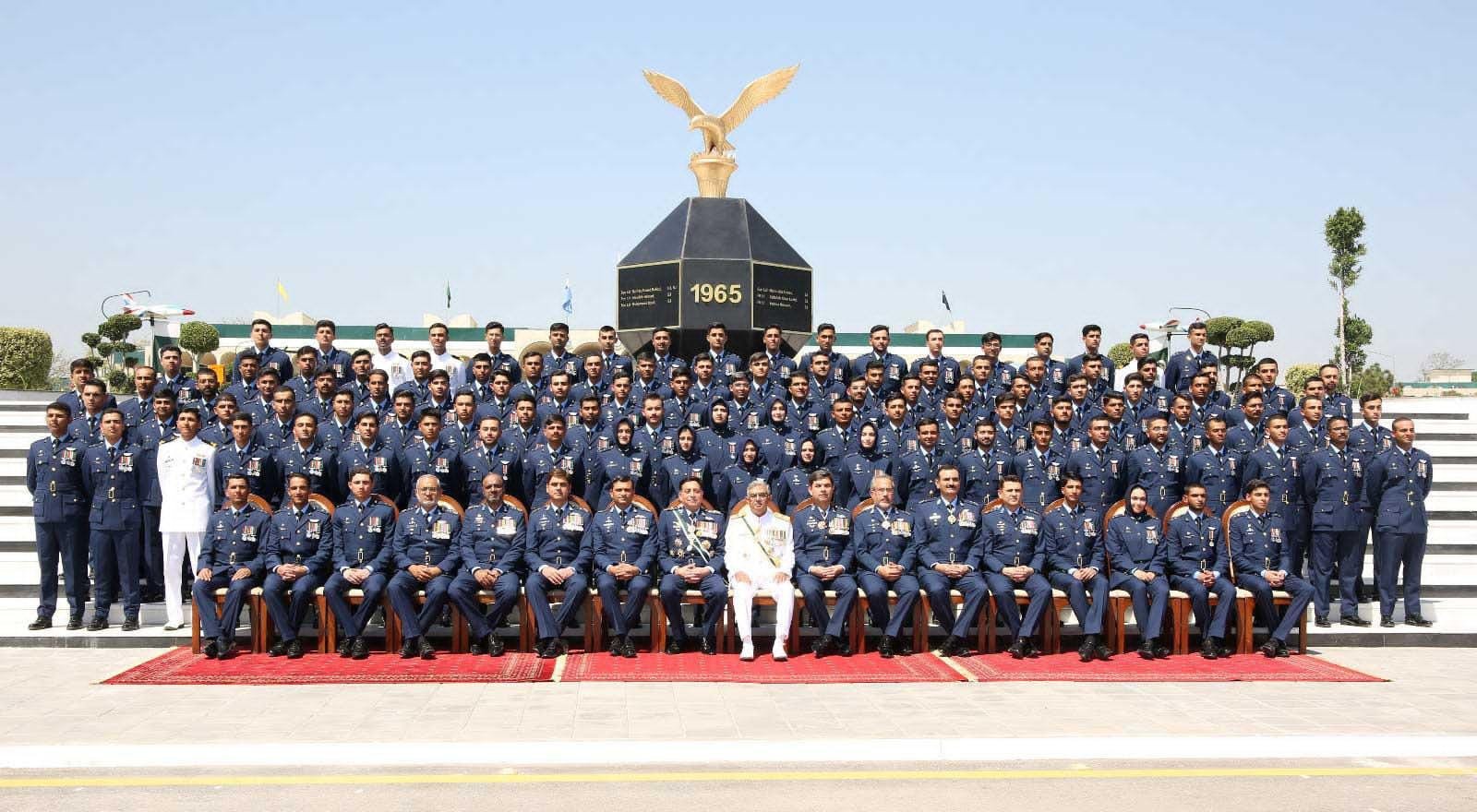 A total of 113 Aviation Cadets graduated on the occasion, and the Chief Guest awarded trophies to distinguished cadets for outstanding performance. Avn Cdt Squadron Under Officer Nad-e-Ali received the Chief of the Defence Forces Trophy for overall best performance in General Service Training; Avn Cdt Navaira Shahzad and Avn Cdt Muhammad Abdullah Ejaz were awarded the Chief of the Air Staff Trophies for best performance in Engineering and Air Defence Courses respectively; Avn Cdt Faran Javed secured the Trophy for best performance in Combat Support Course; while Avn Cdt Wing Under Officer Basit Aliyan Siddiqui and Avn Cdt Salman Saeed were awarded Swords of Honour for best performance in College of Aeronautical Engineering and College of Flying Training respectively.