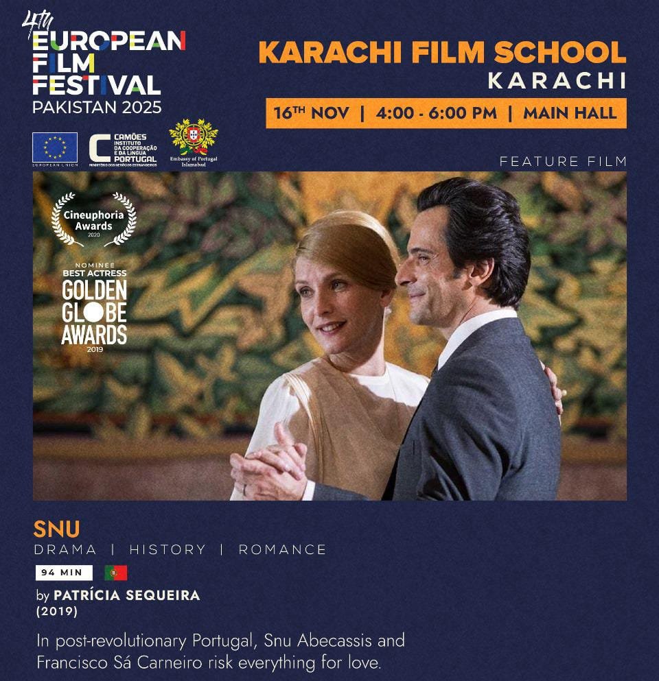 Karachi – 14 November 2025 (Adnan Hameed) : The acclaimed Portuguese feature film “SNU”, directed by Patrícia Sequeira, will be showcased at the European Film Festival Pakistan 2025 on 16 November at the Karachi Film School. The screening will take place in the Main Hall from 4:00 PM to 6:00 PM.