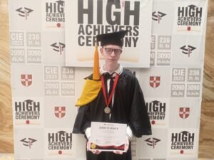 Another achiever, Valijah Moiz from A2 (2025) at the F-8 Campus, Islamabad, secured the Bronze Medal. In response to a question from our correspondent, she shared that she had been studying 8–10 hours daily over the past three months in order to achieve this distinction. She further expressed her resolve by stating that she will continue to work hard to improve her position. Valijah also mentioned that her ambition is to become a psychologist in the future.