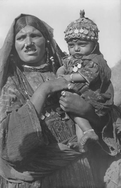 All married women wear a silver necklace and those who can afford it wear heavy silver bracelet. Their shoes are shaped into a turned-up point at the toe and are embroidered. The soles are very thick and often nailed.