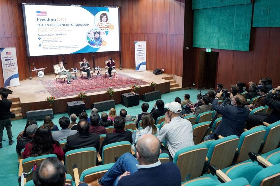 Islamabad, January 30, 2026 – (Adnan Hameed) : The U.S. Embassy in Islamabad launched its Freedom 250 lecture series to engage the Pakistani public on key priorities such as entrepreneurship, the digital economy, and critical minerals. As part of this series, Donna Carpenter, co-founder and chair of the board of directors of U.S. company Burton Snowboards, and Samar Khan, a Pakistani professional athlete and alumna of the U.S. Department of State espnW Global Sports Mentoring Program, connected with sports professionals, youth, and business leaders.