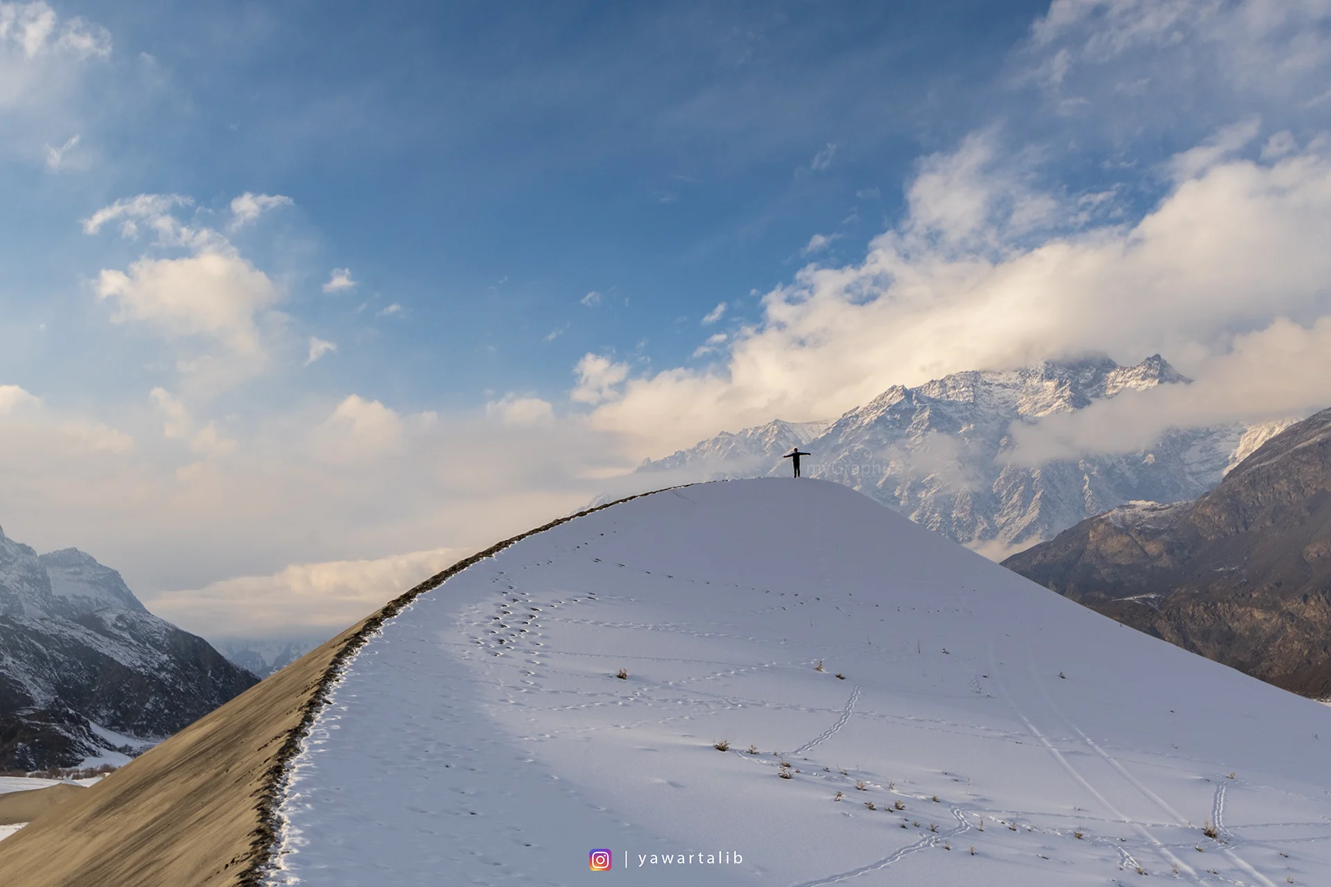 Winter in Gilgit-Baltistan transforms the region into a breathtaking wonderland of snow-clad peaks, frozen lakes, and crystal-clear skies. The mighty Karakoram and Himalayan ranges stand majestically under layers of glistening snow, reflecting hues of pink and gold at sunrise. Valleys like Hunza, Skardu, and Ghizer turn serene and silent, their apricot and cherry trees wrapped in white blankets. Frozen lakes shimmer like glass, while the icy roads winding through mountain passes offer views that seem almost otherworldly. Local homes glow warmly with wood fires, and the aroma of butter tea fills the crisp air. The stillness of winter invites reflection and awe.